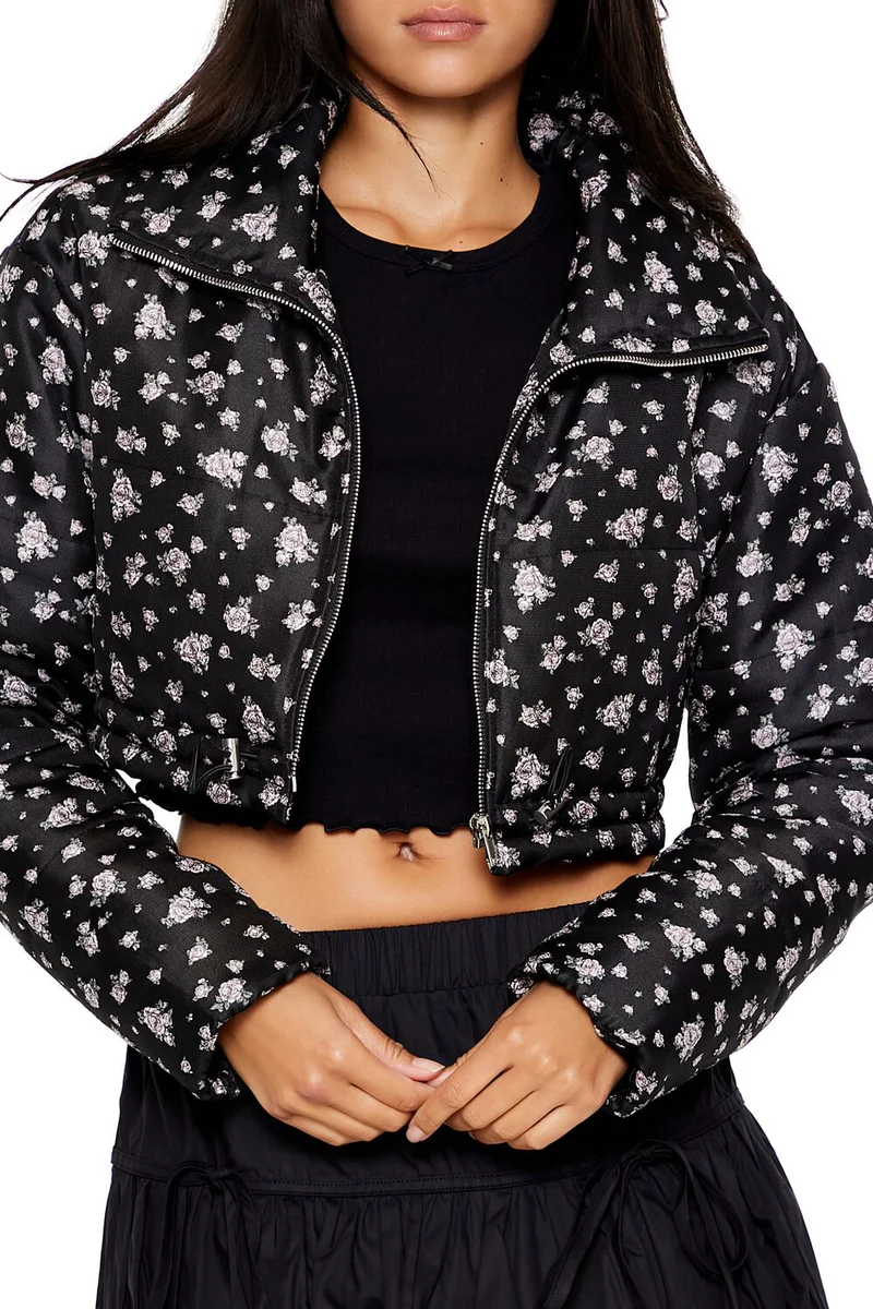 Floral Print Puffer Jacket
