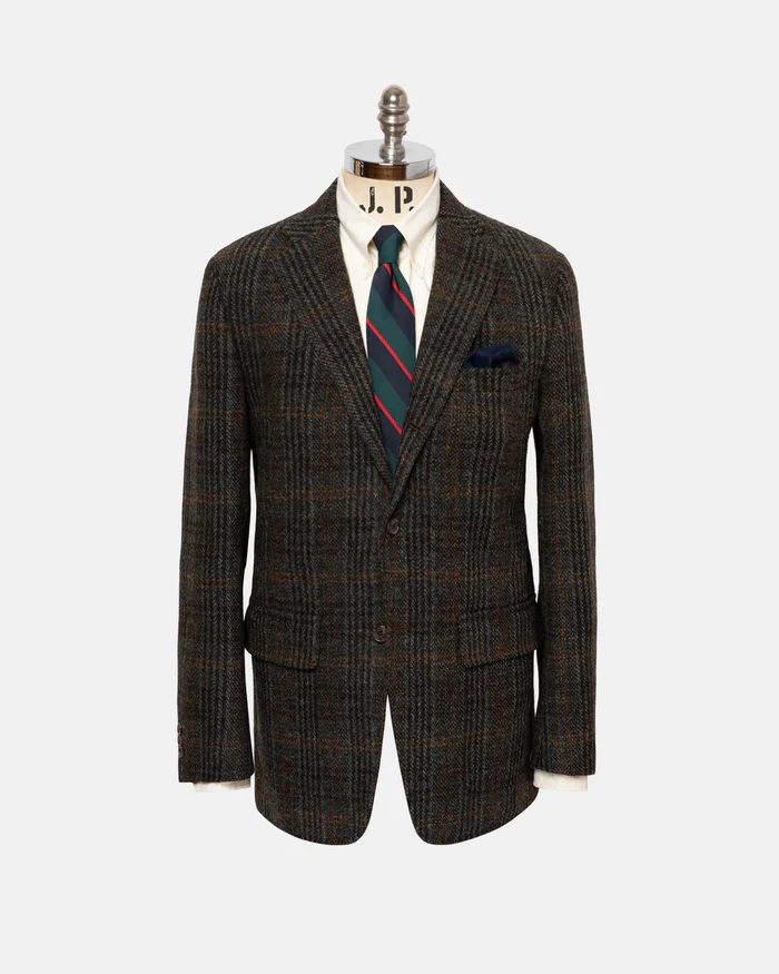 Made-in-USA Olive Plaid Harris Tweed Sport Coat