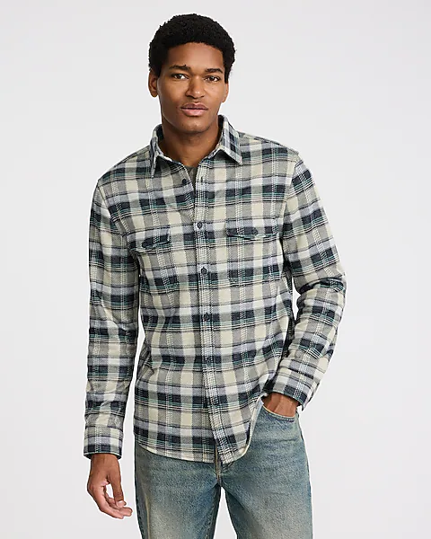 Plaid Double Button Pocket Sweater Flannel Shirt