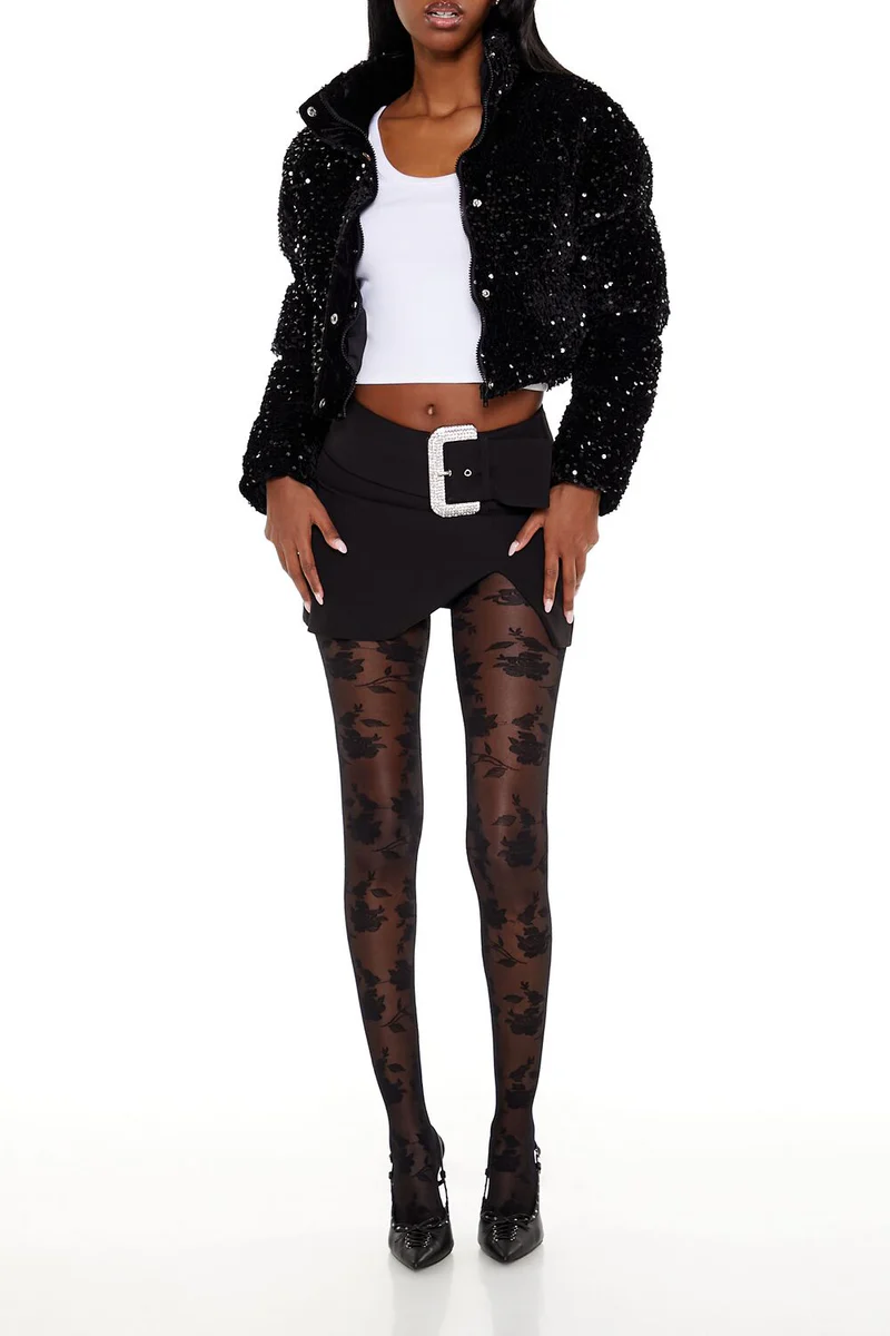 Sequin Faux Fur Puffer Jacket