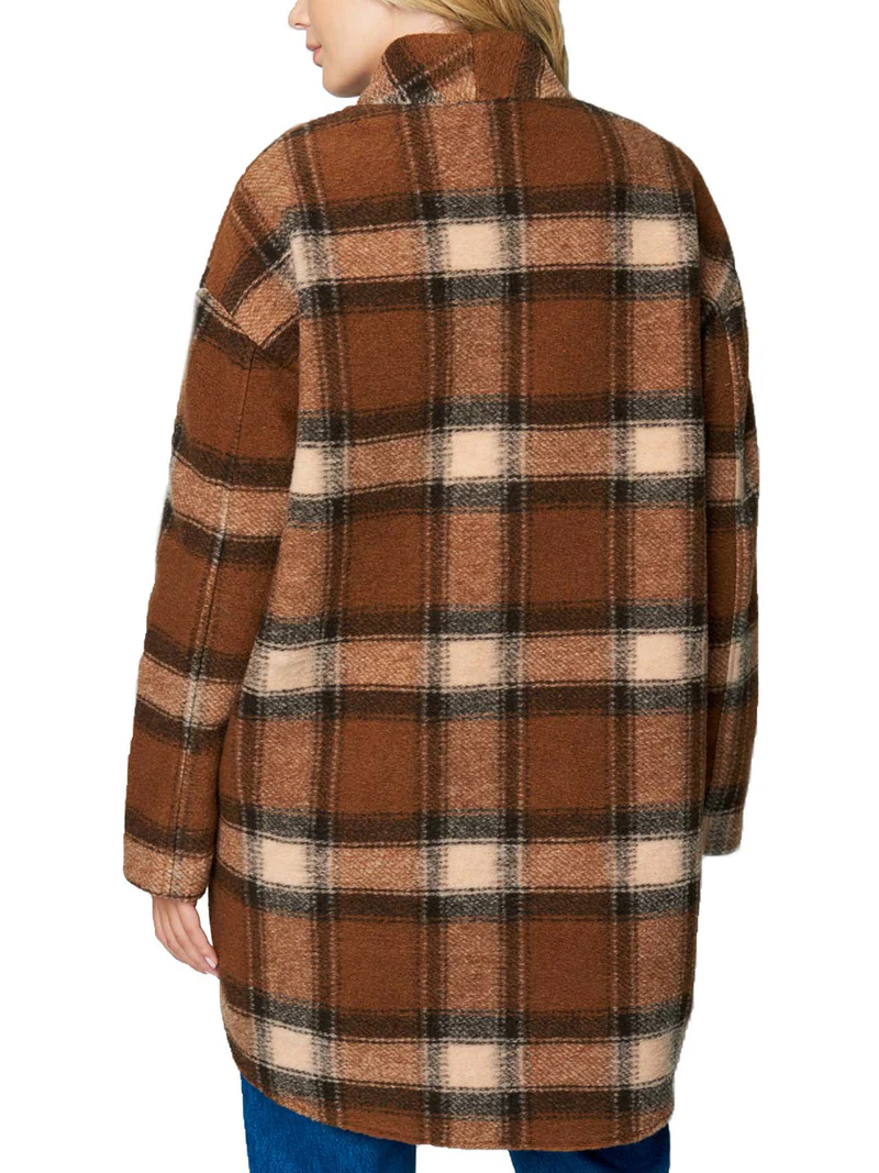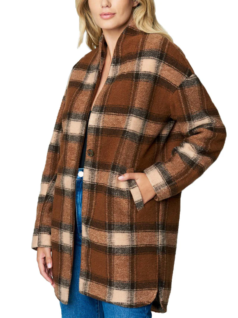 A trendy plaid, this supersoft and warm cocoon coat is outfit-elevating. A perfect addition to any fashionable winter wardrobe. This coat features two front pockets near the waist.