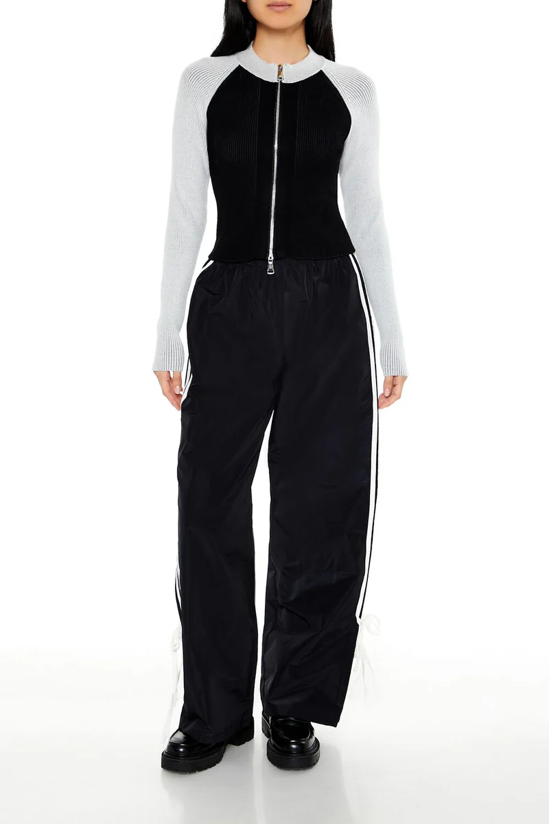 Two-Tone Raglan Zip-Up Sweater