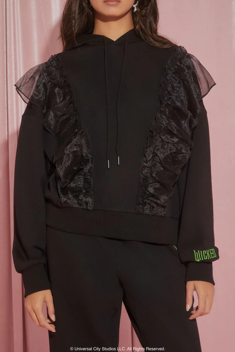 From our Wicked x Forever 21 collection, this fleece hoodie features back ‘Wicked Witch’ embroidery, dropped long sleeves, ruffle trim, and a drawstring hood.- © Universal City Studios, LLC. All Rights Reserved.